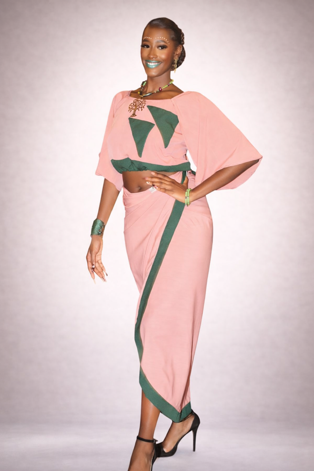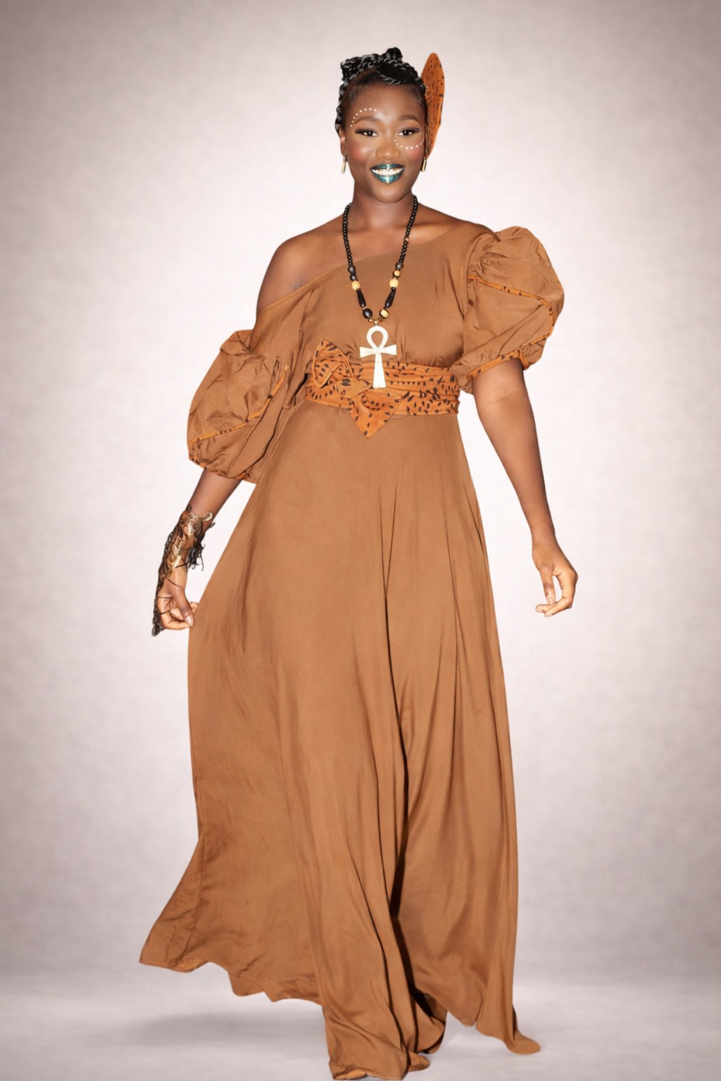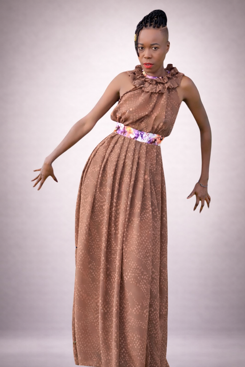 Nous proposons des tenues tradi-modernes, mariant tissus modernes et influences africaines, conçues uniquement sur demande.